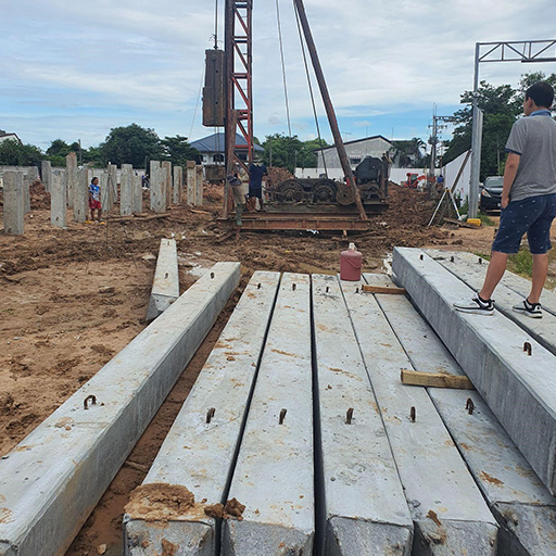 บริการ ปั้นจั่น ใช้สำหรับตอกเสาเข็มขนาดต่างๆ ในการทำฐานราก ของอาคาร, เขื่อนกันดิน, และสะพานคอนกรีตเสริมเหล็ก มีปันจั่นขนาดความสูง 9-20 เมตร